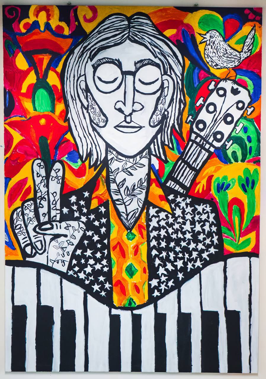 “Джон Леннон у стилі поп-арт” – це яскравий та стилізований портрет відомого музиканта, виконаний у стилі поп-арт. Художники, використовуючи акрилові фарби, створили динамічну композицію, що поєднує в собі елементи класичного портрета та сучасного мистецтва.