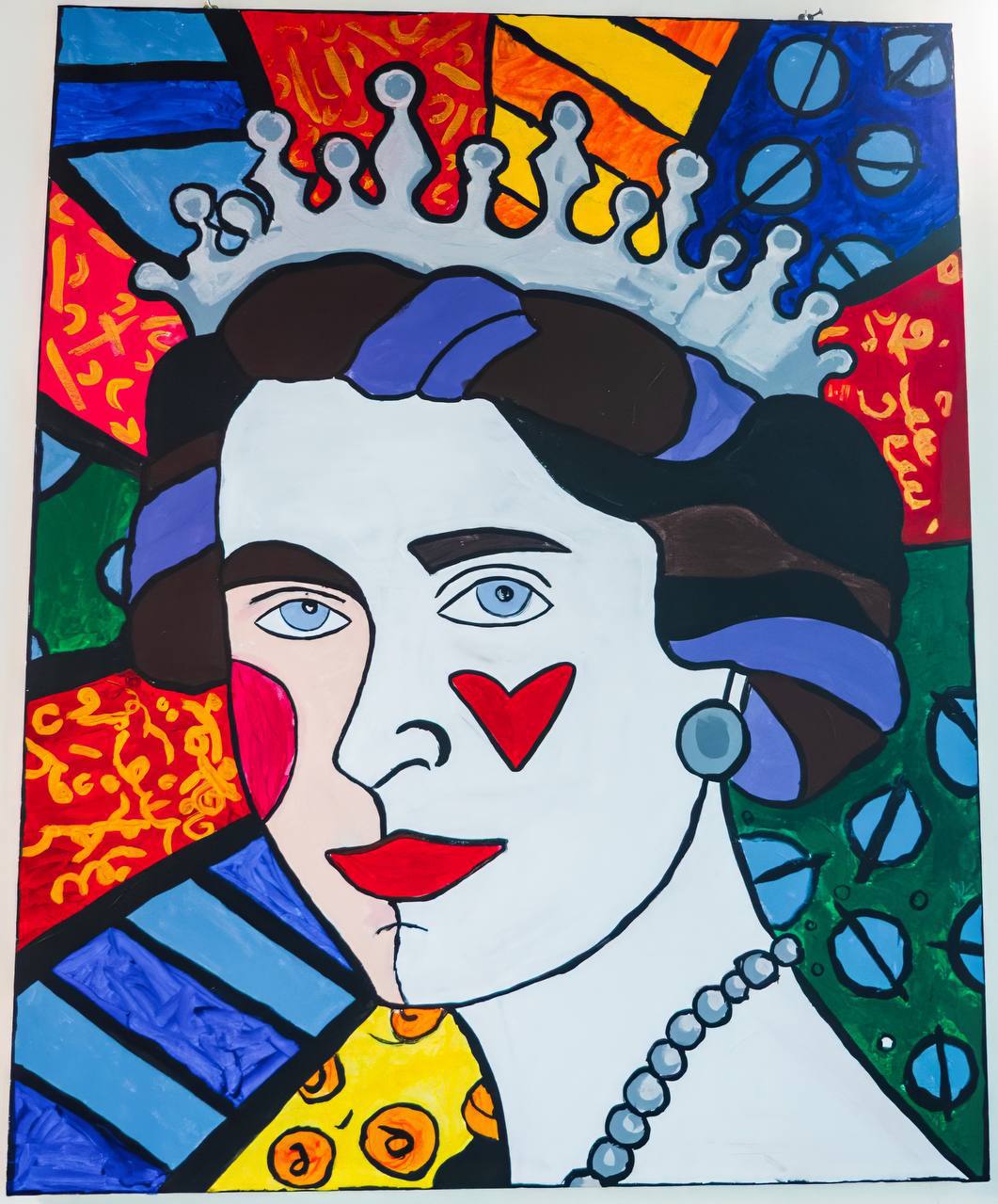 “Королева” – це яскравий та незвичайний портрет королеви Єлизавети II, виконаний у стилі поп-арт. Художники, використовуючи акрилові фарби, створили динамічну композицію, що поєднує в собі елементи класичного портрета та сучасного мистецтва.